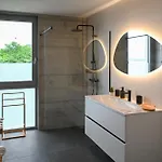 Die Villa bietet aus den Fenstern einen Blick aufs Meer. Zur Ausstattung des Badezimmers gehören auch eine getrennte Toilette und eine Dusche. Ein Haartrockner, Badelaken und Hausschuhe sorgen für zusätzlichen Komfort.